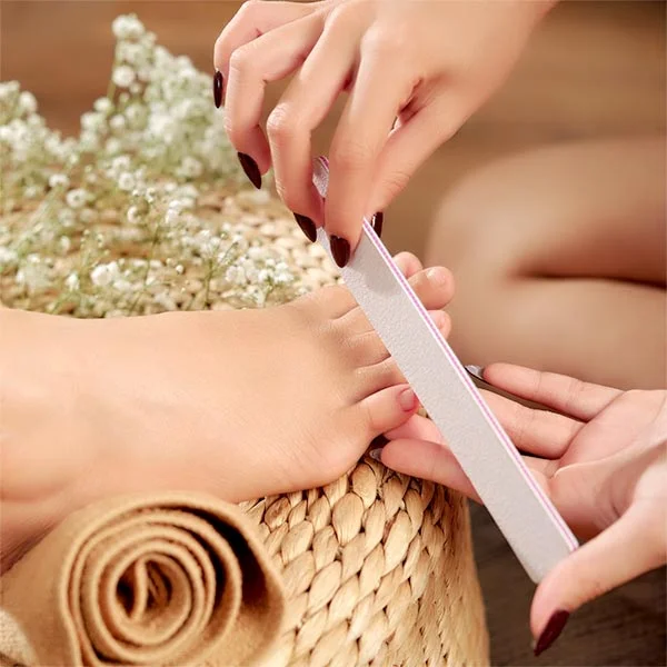 Rejuvenate your feet with the invigorating properties of essentials. Mandarin lotion is massage to naturally moisturize and Madarin sugar scrub is used to exfoliate. The Pedicure is completed with cuticle & callus work, sugar scrub exfoliation, cooling & moisturizing mask & leg massage.